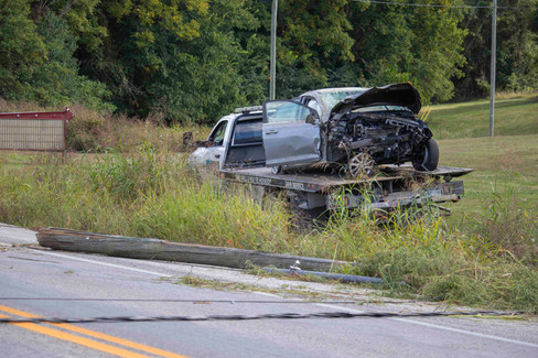 On Wednesday, September 3, the Washington County Sheriff’s Department, EMS and the Pierce-Polk Volunteer Fire Department (VFD) received a dispatch call at 4:58 pm regarding a single-vehicle wreck on SR-135 involving a downed powerline draped across the highway. Upon the arrival of the Washington County Times, a Hyundai with extensive front-end damage could be seen with several small trees and even a utility pole destroyed alongside it.